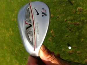 I went out to see Christopher at Pumpkin Ridge today and he had this sand wedge waiting for me. I’ve never owned a sand wedge, nor hit with one, but I can safely say that it is an exciting addition to my very limited bag of tricks. It’s amazing what you can do with one. Right off the bat (or should I say club) I made decent contact and flew the ball about twenty feet in the air and instead of rolling when it landed it almost came to a dead stop because of all of the spin. The pitching wedge hits it lower and further, it’s good for a shot where you want a lot of roll, but with this one you can really stick the ball somewhere where you don’t have much real estate. I’m excited about going out tomorrow morning and seeing what all I can do with it out at Heron. Seems like the possibilities are endless with both of these clubs.